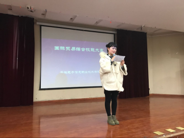 本网讯4月6日经济管理系在2002C顺利举办国际贸易综合技能大赛。本次大赛分初赛和决赛两部分,初赛为知识赛,决赛为产品营销推广。决赛中,各参赛队用全英文结合PPT进行产品现场展示。