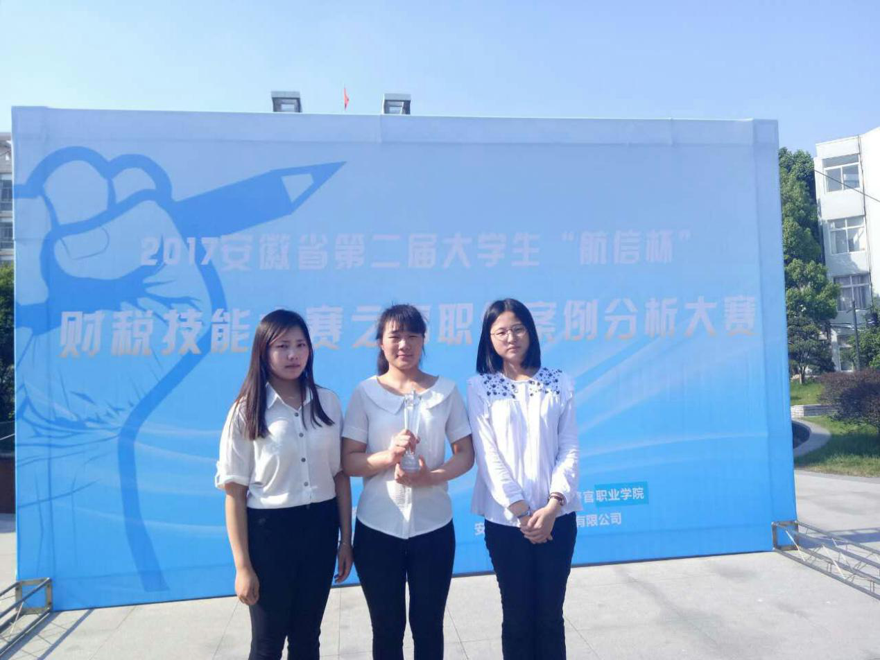 本网讯 2017年5月27日,第二届安徽省大学生财税技能大赛之高职组案例分析大赛在安徽警官职业学院圆满落下帷幕。本次大赛由安徽省教育厅主办,安徽财经大学承办,安徽警官职业学院协办。全省共有28所高职院校率队参赛,我院由经管系张莉、陈克军两位老师指导的由会电15级吴巧巧、尹双、徐婷婷组成的代表队,在比赛中凭借扎实的理论功底、熟练的PPT制作能力,娴熟的表达技巧以及良好的团队协作能力,发挥出色,最终荣获团体二等奖。