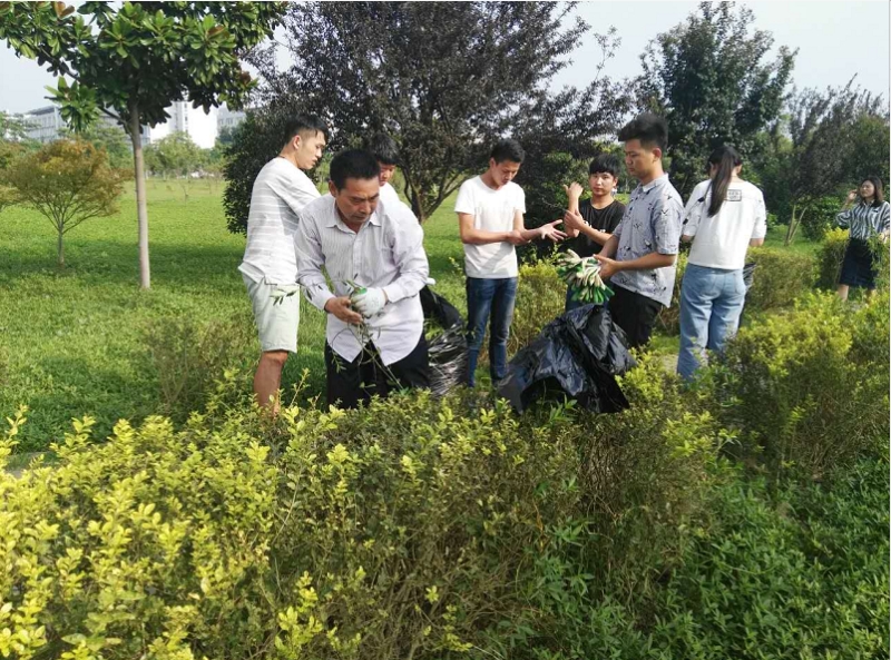 本网讯 为进一步美化校园环境,助力蚌埠市争创全国文明城市,9月13日下午,经济管理系全体教师和部分学生参加了义务除草活动。