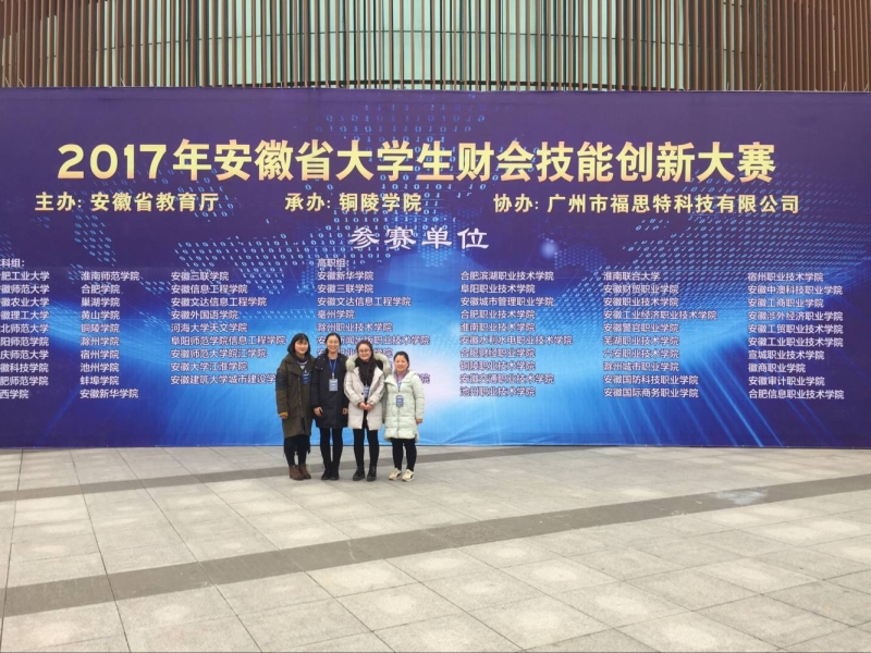 本网讯2017年12月23日,由安徽省教育厅主办,铜陵学院承办,广州福斯特科技有限公司协办的安徽省首届大学生财会技能创新大赛在中国古铜都铜陵市举行。本届大赛历时两个多月,经过各校预赛遴选和推荐,最终参加决赛的队伍有来自全省69所高校的126个代表队,共计504名选手参加大赛。