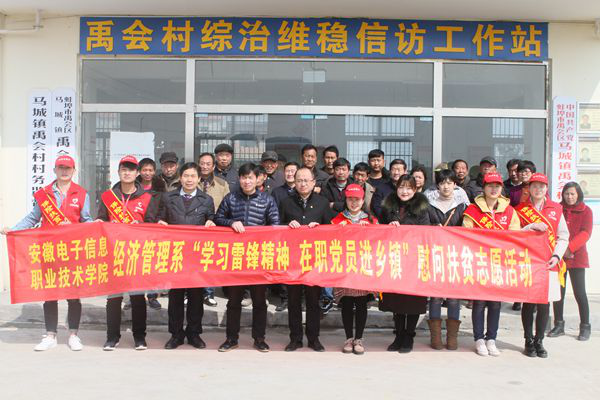 本网讯 在全国两会胜利召开之际,为深入学习雷锋精神,践行雷锋精神,以实际行动为困难群众办好事、解难题,3月9日下午,由必赢766net手机版经济管理系、蚌埠市禹会区文明办联合举办的“学习雷锋精神在职党员进社区慰问志愿服务活动”在禹会区马城镇禹会村拉开帷幕。蚌埠市禹会区文明办副主任、行政执法局局长徐玉柱,经济管理系党总支副书记赵世同、党员教师韩向军及部分学生党员参加了此次活动。