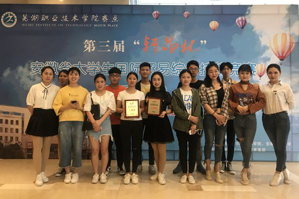 本网讯 4月28日,第三届“轩昂杯”安徽省国际贸易综合技能大赛在芜湖举行,此次大赛由安徽省教育厅主办,芜湖职业技术学院承办。来自我院经济管理系和软件学院的18名学生组成了两支代表队参加了此次比赛,他们分别在徐小雅、李东宁和朱音楠、陈惠四位专业教师的精心指导下,认真准备、刻苦训练,经过激烈比拼后,喜获比赛二等奖和三等奖。