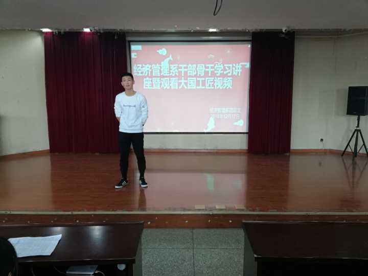 本网讯 12月18日—20日,为加强学生学习“匠人精神”, 经济管理系大骨班组织学生干部连续观看大型励志节目《大国工匠》。参加本次活动的有经济管理系团总支副书记刘德,团总支委员周鹏飞、蔡婉珍、叶倩倩、张先鑫,经济管理系学生会主席:王崇屹、李立敬、连振,以及经济管理系大骨班全体成员。