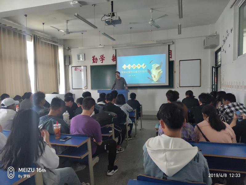 本网讯 为增强学生创业创新意识,培养创业创新技能,树立良好的创业创新观,经济管理系周二鹏老师于4月8中午在5502多媒体教室开展了“创业计划书文案写作技巧”为主题的讲座,经济管理系电子商务、市场营销及会计等专业学生参加此次讲座。