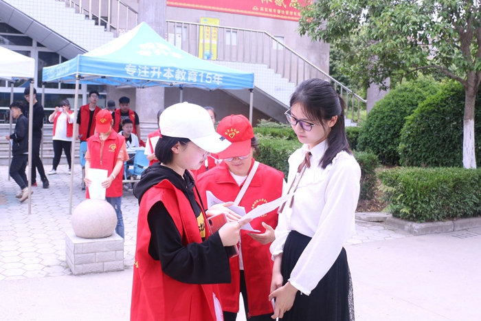 本网讯 为进一步加强学生金融风险防范意识,维护校园金融安全,打造校园金融净土。5月18日,经济管理系青年志愿者协会联合安徽财经大学青年志愿者协会在学院食堂门口举行金融知识进校园宣讲活动。