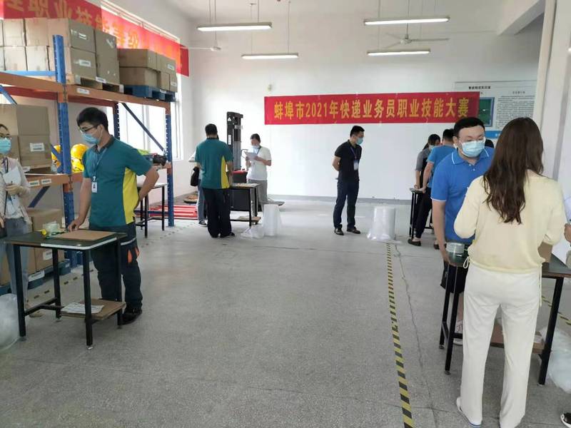 本次竞赛按照快递业务员国家职业技能高级(国家职业资格三级)标准命题,设立“快递收派”和“快件处理”两个竞赛项目,分别包括理论考试和实际操作两个环节。来自全市34家快递企业的58名业务员进行了激烈角逐。大赛结束后,对两个竞赛项目获得前三名的快递业务员颁发荣誉证书,并对每个项目获得第一名的选手向蚌埠市总工会申报“蚌埠市五一劳动奖章”。