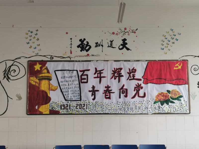 活动期间,各班级在辅导员的指导下,认真准备、精心布置。同学们利用课余时间自己动手,用心查阅收集相关党史资料,了解中国共产党诞生、发展、壮大的百年风雨历程。他们用画笔勾勒红色印记,用色彩描绘爱党情怀,用文字歌颂中国共产党的丰功伟绩。一副副精美的黑板报,从整体的排版到细微的边框,无处不给人以美的享受,主题画面和激励人心的内容成为同学们学习党史的文化教育大餐,表达了学生对党和祖国的热爱。