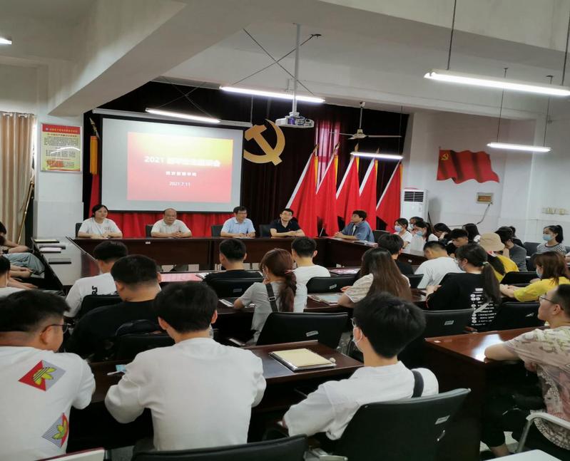 本网讯 7月11日上午,经济管理学院在3003C召开2021届毕业生代表座谈会。经济管理学院党总支书记曹晓军、院长项西国、副院长施艳昭、党总支委员周二鹏、吴冬霞及学院各班级优秀毕业生代表参加座谈会。经济管理学院党总支副书记张放主持会议。