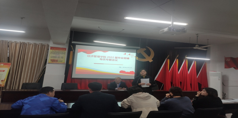 本网讯 10月11日下午,经济管理学院在3003c召开2022届毕业班辅导员专题会议。经管学院党总支书记曹晓军、副书记张放及2022届毕业班辅导员参加会议,会议由张放主持。