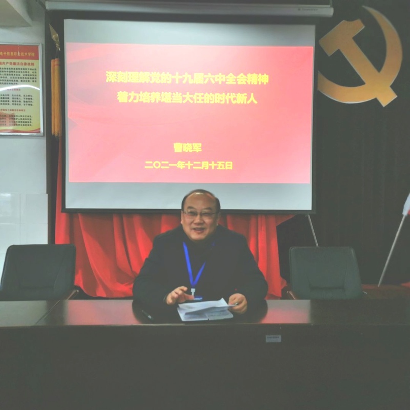 本网讯 为深入学习贯彻党的十九届六中全会精神,12月15日下午,经济管理学院党总支书记曹晓军为全院教师做了一场以“深刻理解党的十九届六中全会精神,着力培养堪当大任的时代新人”为主题的党课报告。