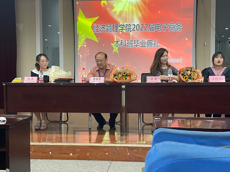 本网讯 为营造温馨热烈的毕业氛围,将毕业生的热情引导到感恩母校、报效祖国的实际行动中来,2022年6月23日,经济管理学院隆重举行2022届电子商务专业本科班毕业典礼。经济管理学院党总支书记曹晓军、学校本科部主任徐莹、辅导员陈惠,以及2022届电子商务专业本科班90余名同学参加了毕业典礼。