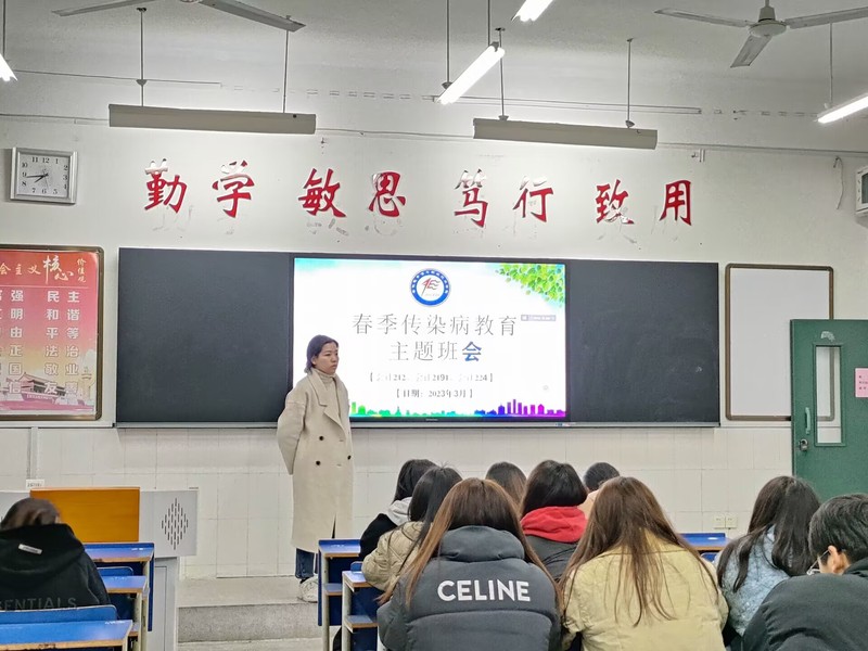 班会课通过辅导员宣讲、班干部领学、观看视频、学生提问、现场讨论等形式,对春季常见传染病类型、各种传染病的传播途径、发病症状、预防措施等做了详细介绍,要求同学们在宿舍定时开窗,注意卫生,勤洗手,保持健康生活方式。如出现身体不适症状,要立即报告,及时就医,避免交叉感染。