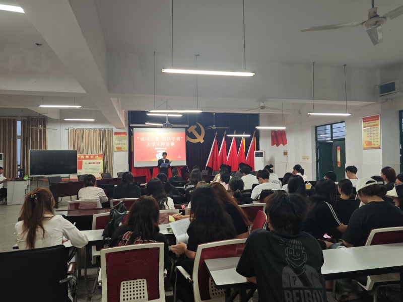 本网讯  为增强当代大学生的诚信意识和责任意识,进一步弘扬诚实守信这一中华民族传统美德,引导学生深入践行社会主义核心价值观,2024年6月18日晚,由经济管理学院举办的“树诚信之风,做诚实青年”主题辩论赛在3003C举办。经济管理学院分团委负责人王珍、学生会干部和学生代表共75人参加活动。