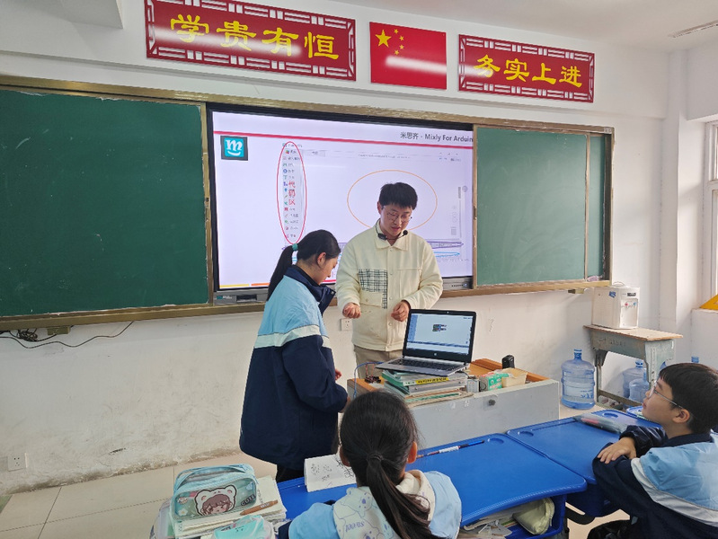 江阳老师的“炫彩流水灯制作”职业体验则更加直接地让学生感受到了动手实践的魅力。在他的指导下,学生们亲手操作,每一步都充满了挑战。江阳老师耐心地解答每一个问题,鼓励学生们发挥创意,现场不时传来欢声笑语,学生在轻松的氛围中完成了职业体验。