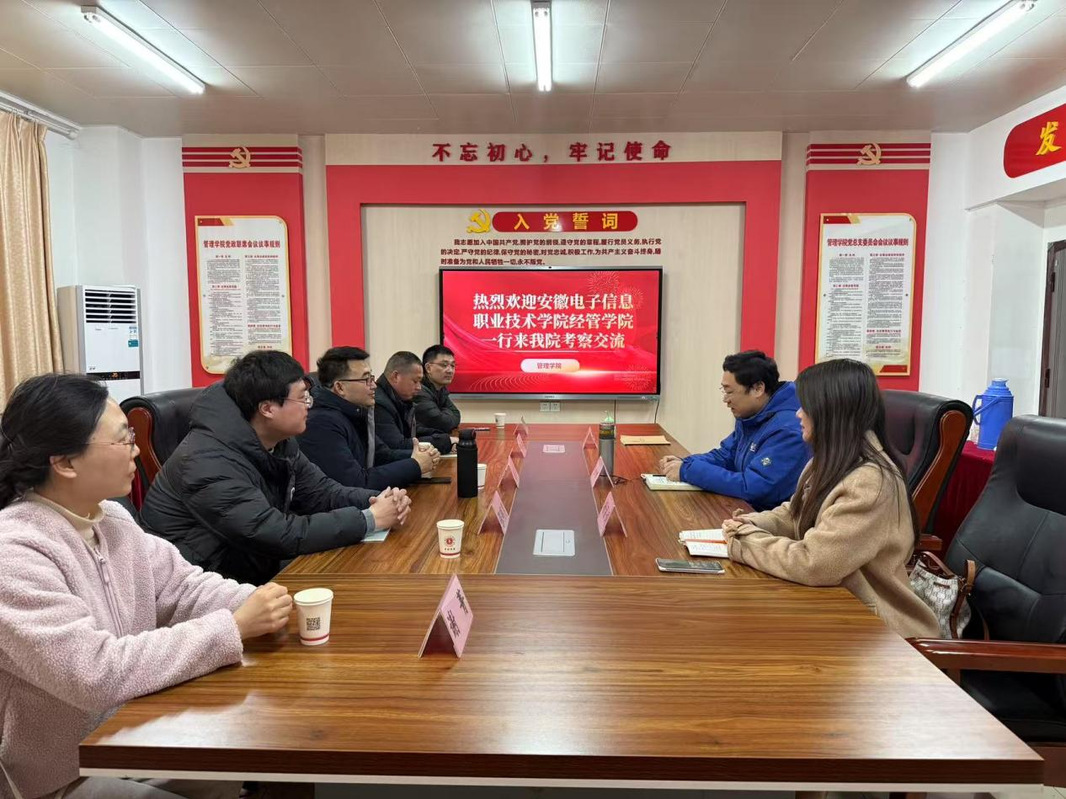 本网讯:3月10日上午,经济管理学院副院长施艳昭带领电子商务教研室主任谢菁、营销教研室主任何云春、物流教研室主任张明月及电子商务骨干教师尤锐一行5人,赴安徽工商职业学院管理学院进行学习交流。此次交流聚焦专业建设、职业技能竞赛指导、校企合作及产业学院建设等主题,旨在促进两院间的深度合作与共同发展。