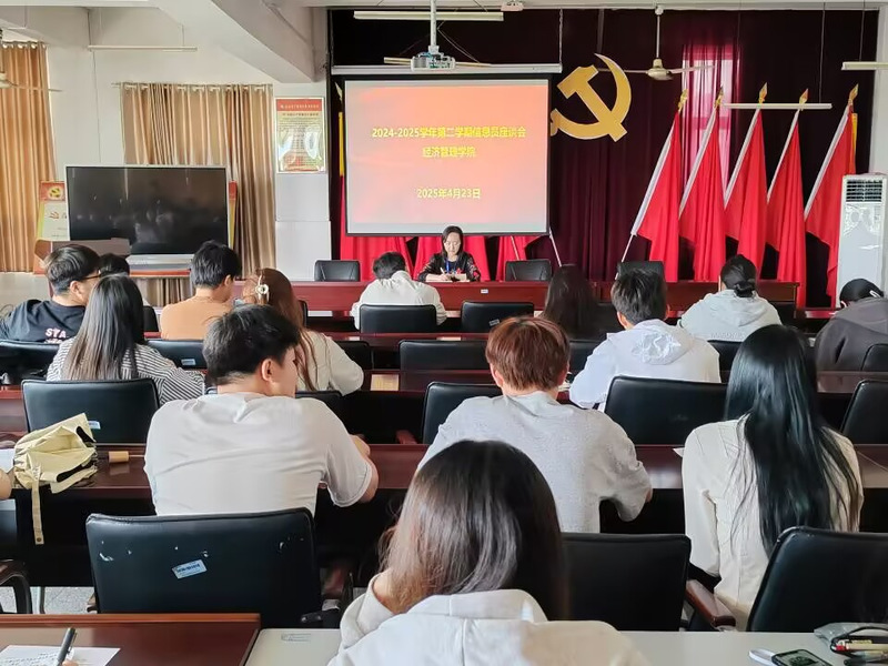 本网讯 为进一步畅通学生与学院之间的沟通渠道,及时了解并解决学生在学习和生活中遇到的问题,2025年4月23日,经济管理学院在3003C会议室举办了2024-2025学年第二学期第一次学生信息员座谈会。经济管理学院教学督导员朱音楠及各班级学生信息员代表参加了会议,会议由朱音楠主持。