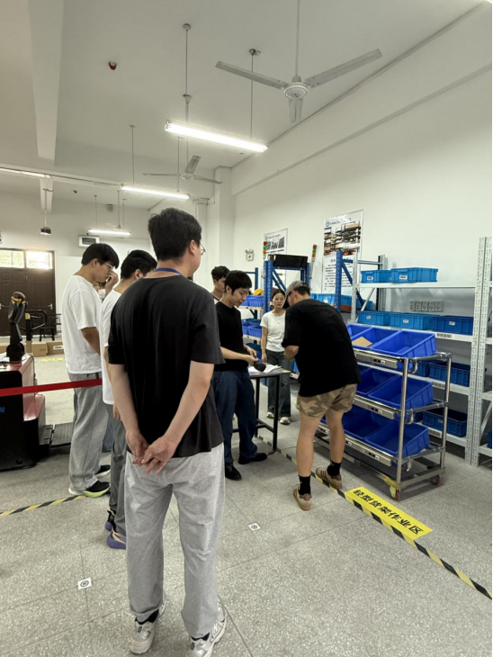 本次实训依托物流行业领先的硬件设施与数字平台,构建起高度仿真的现代物流作业场景。向拉夫现场指导学生分组在电子标签货架与RF手持终端辅助下精准执行入库指令;智能拣选机器人高效响应指令,将目标货品自动送达拣货工位;智慧物流管理信息系统贯穿实训全程,学生实时处理订单、调度资源、监控流程,体验数字化供应链的高效协同。向拉夫结合企业真实案例,现场指导学生优化操作路径、解析设备运维要点、剖析智慧仓储决策逻辑,将行业前沿技术转化为学生操作技能。