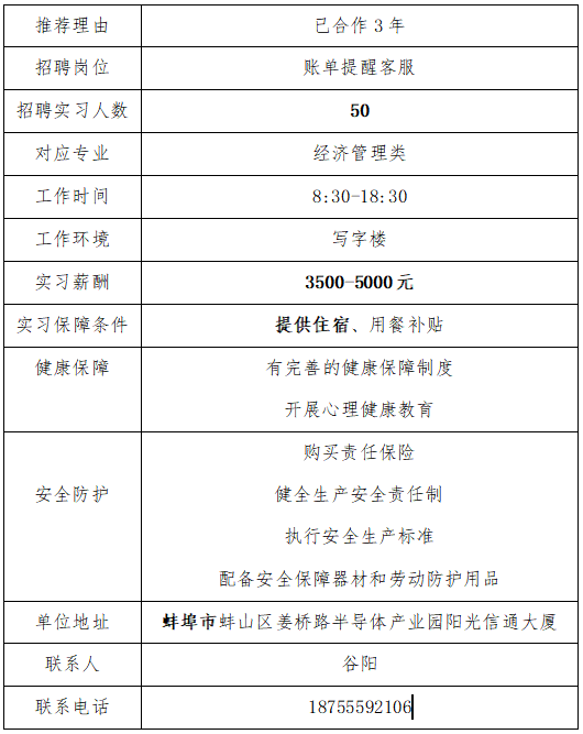 经济管理学院岗位实习单位推荐:安徽阳光信通电子科技有限公司