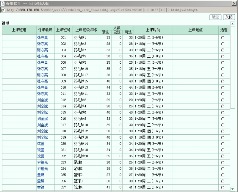 2017年6月1日08:00-2017年6月15日18:00,学生在该时间段内按照体育课老师要求自主选课。