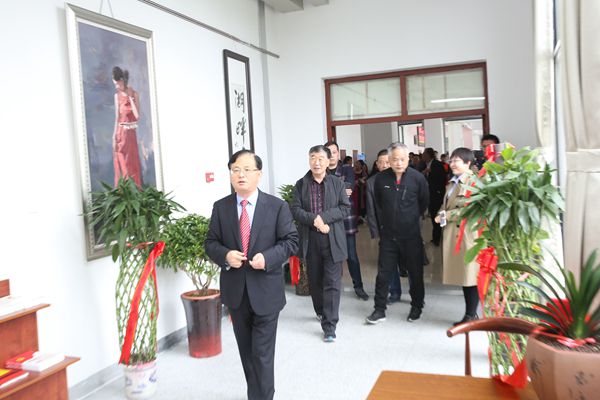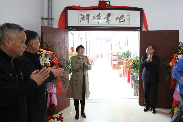 仪式现场,石象斌为“湖畔书吧”揭牌,并陪同嘉宾参观书吧。