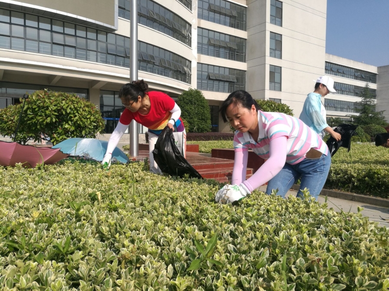 除草现场,大家拿起除草工具,开始埋头除草。各小组分工明确,积极配合,在组长和党员同志的带领下,有的拔草,有的装袋,有的把杂草运到指定的位置,大家忙的不亦乐乎。