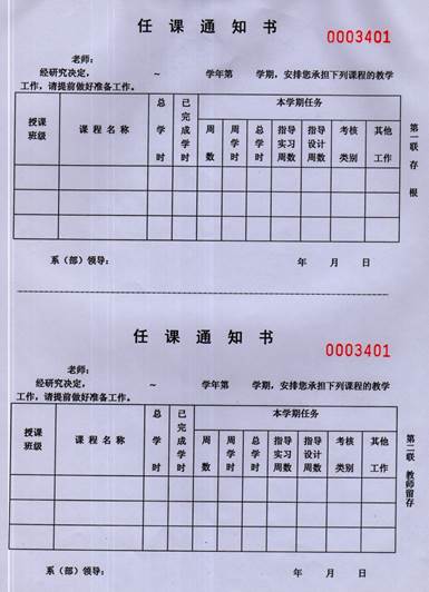 1. 任课通知书一式二份,第一联由二级学院(部)存档,第二联由任课教师留存;