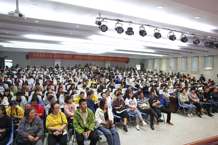 为深入开展爱国主义教育和革命传统教育,激励高职扩招学生技能成才、技能报国,10月20日下午,学院在信息中心学术报告厅举行2019年面向社会扩招新生“开学第一课”,党委副书记、院长王国武以“守初心匠心筑梦、担使命技能报国”为题讲授开学第一课。教务处处长闻学主持活动,各系(院)负责人、高职扩招班级辅导员参加活动,600多名高职扩招新生现场聆听开学第一课。