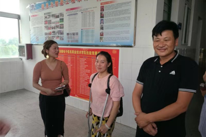 刚为父子俩办好手续,又迎来了祖孙三代。在刘泉的带领下,他的姑姑和他的女儿,祖孙三人都选择了计算机专业就读——姑姑刘莲春44岁,在梅桥镇淝北村做民政协管员;刘泉47岁,是梅桥镇淝北村党总支副书记;女儿刘凤26岁,也在村里工作。“现在村里的工作要求越来越高,好多东西都得在网上弄。我就想学个计算机,将来肯定用得到。”刘泉介绍,姑姑因为小儿麻痹症落下了腿脚残疾,干不了重活。而目前从事的协管员工作,几乎天天跟电脑打交道,不会用电脑可不行。而女儿学了计算机,将来无论是做社区服务工作还是自己创业干电商,都是必备技能。所以,祖孙三代齐动员,都回学校上课了。“村干部里还有不少人也报名了,大家都觉得这政策好!家里也支持!”说着话,刘泉向记者竖起了大拇指。