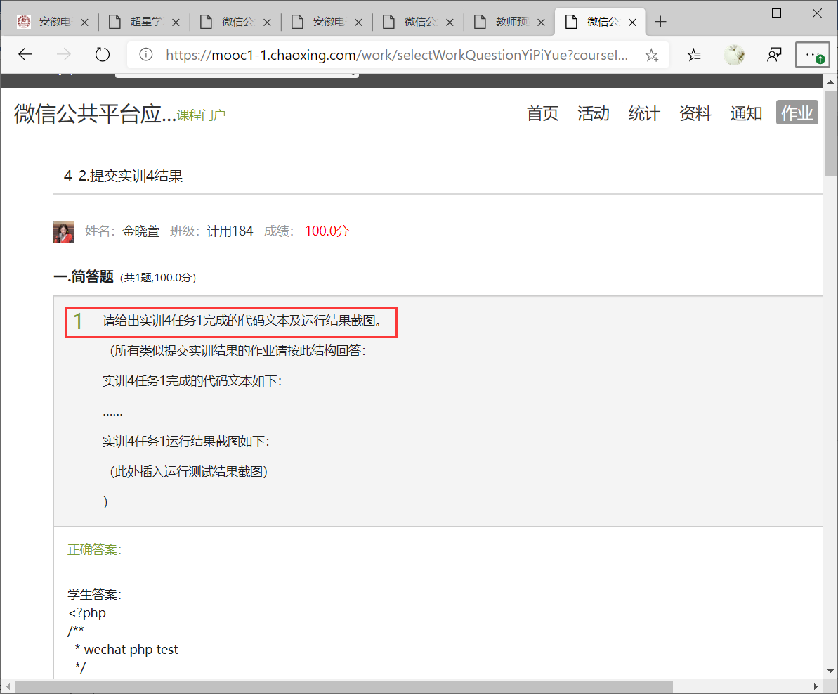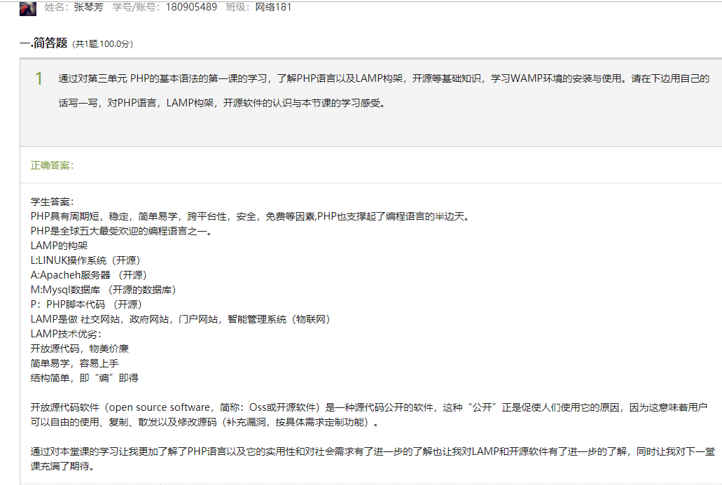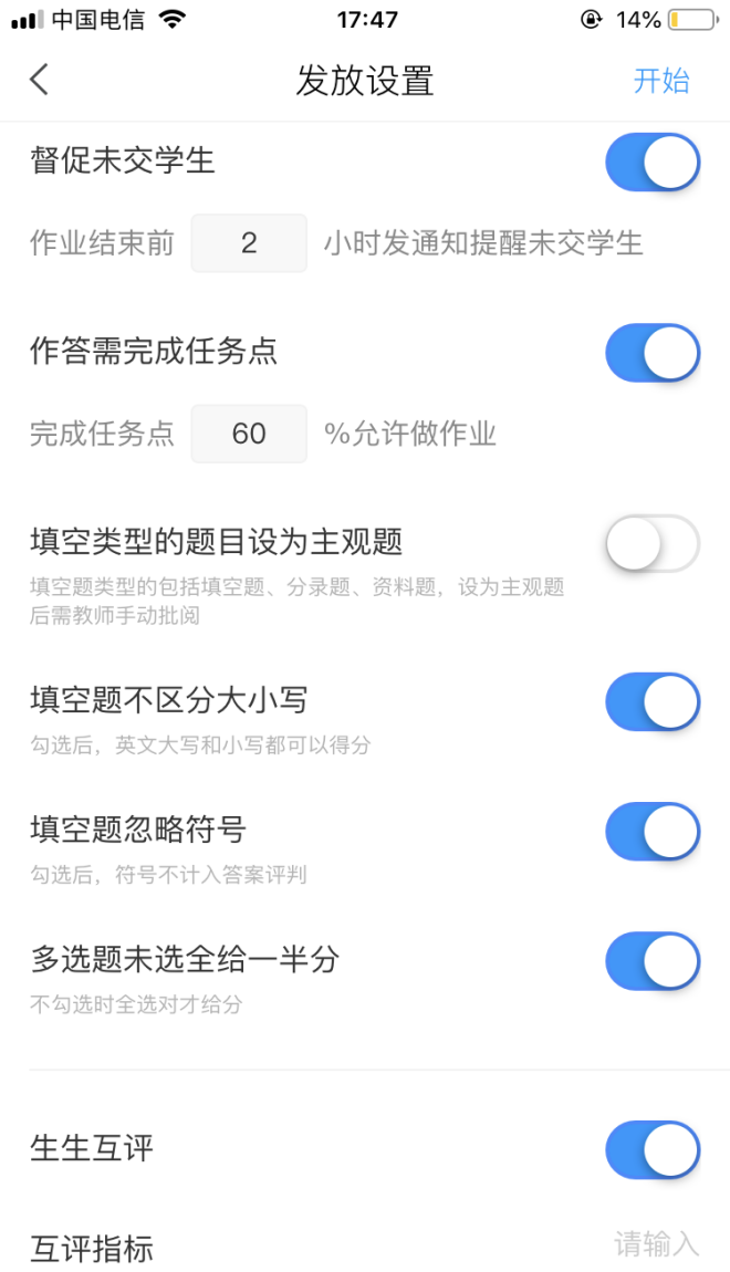 《微信公众平台应用开发》课程经常一周布置四次作业,共五个行政班级,批阅作业量达600余份,细致批阅会占用太多时间,通过让学生完成后互评对于答案相对确定的作业,除节省教师时间外,也可以使学生通过批阅其他学生作业,查看到较好的作答,相互学习。