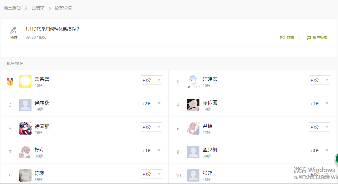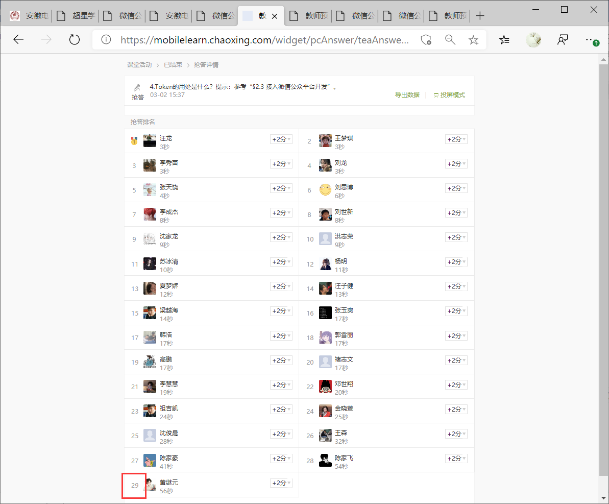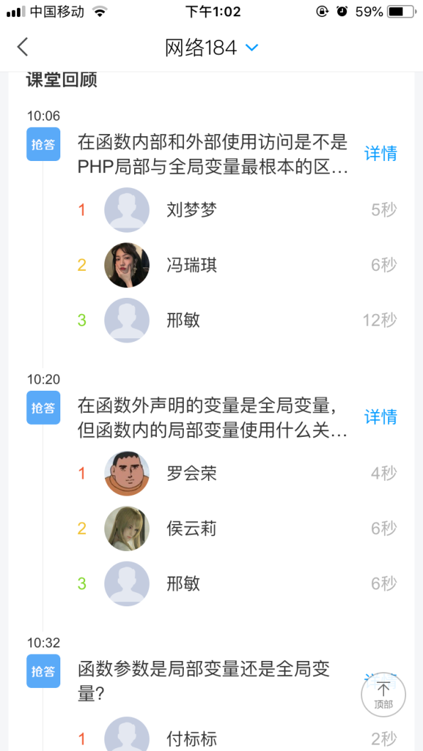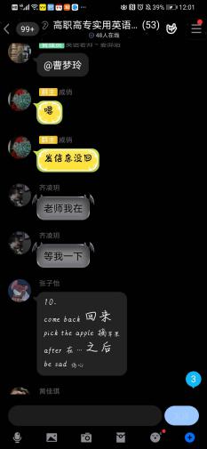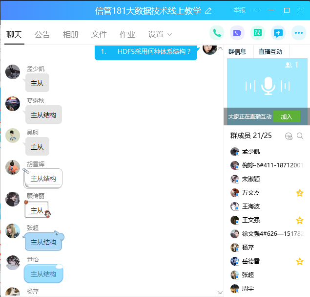 4.学生们依据提前知晓的任务来按照顺序或者接麦回答,或者打字回答。