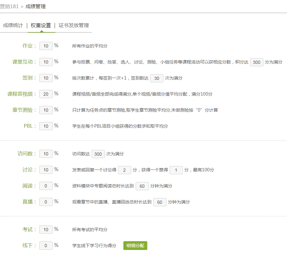 4.合理设置课程成绩构成及权重并公布,引导学生积极参与各类学习活动