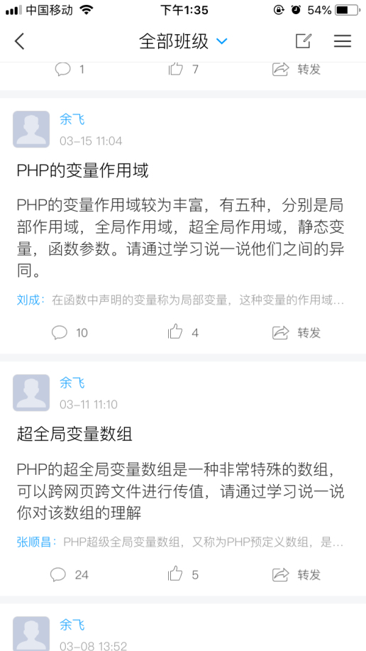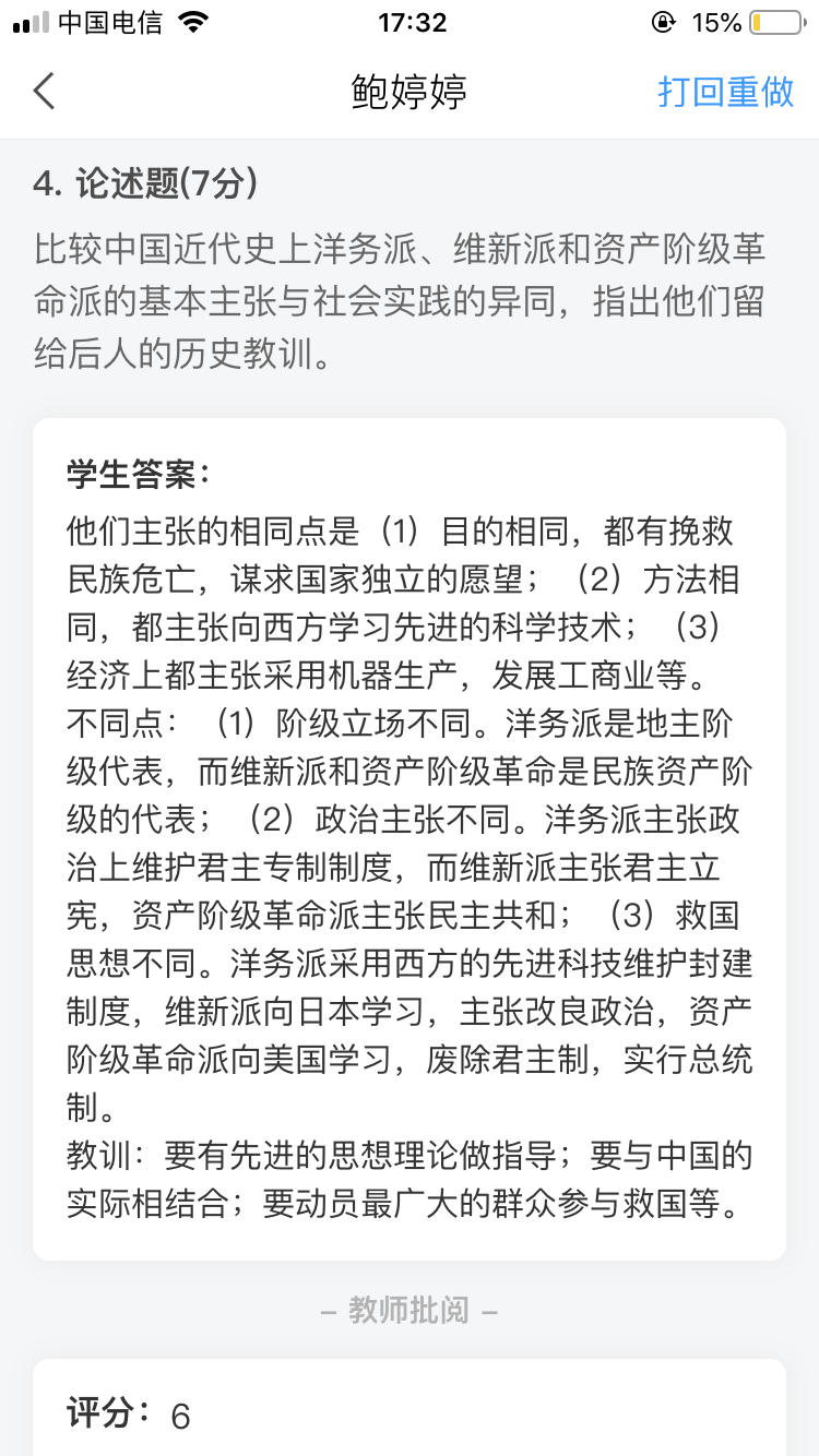 5.对于答案相对确定的作业让学生完成后互评以使相互学习