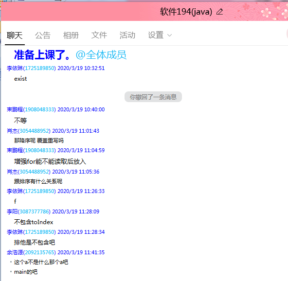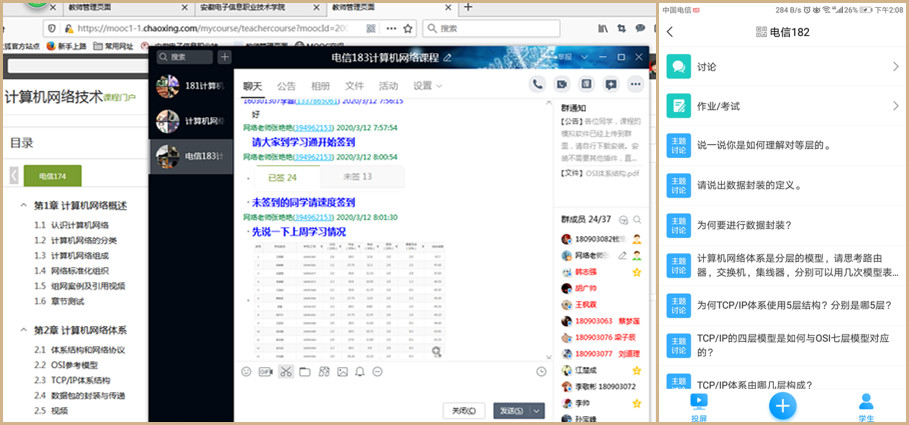 QQ群腾讯会议中教师点名答题,或者讨论;超星学习通中教师留有讨论任务。