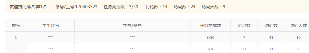 另外为了确保学生的上课质量,我会在课堂上不定时发布任务,这些任务包括课堂签到、课堂练习、课堂视频以及上传课堂笔记等,这些活动的完成时间一般设置为5-10分钟,活动结束之后通过分析活动的完成情况来观察学生的学习动态,确保同学在上课期间一直在课堂上。对于活动没有按时完成的同学我会立刻腾讯会议点名,如果同学在课堂上说明只是拖延了时间,如果没有在课堂上就说明学生已经离开了,虽然上课签到了但是并没有认真上课,对于个别此类学生我会在课后单独联系,让其说明情况。未来促进学生学习,每节课上课前我会公开学习通成绩排名情况,对于排名靠前的同学进行鼓励,对于排名靠后的同学进行督促,并且严肃说明学习通学习结果直接作为本学期平时成绩,这对学生来说会形成一定的督促和学习动力。