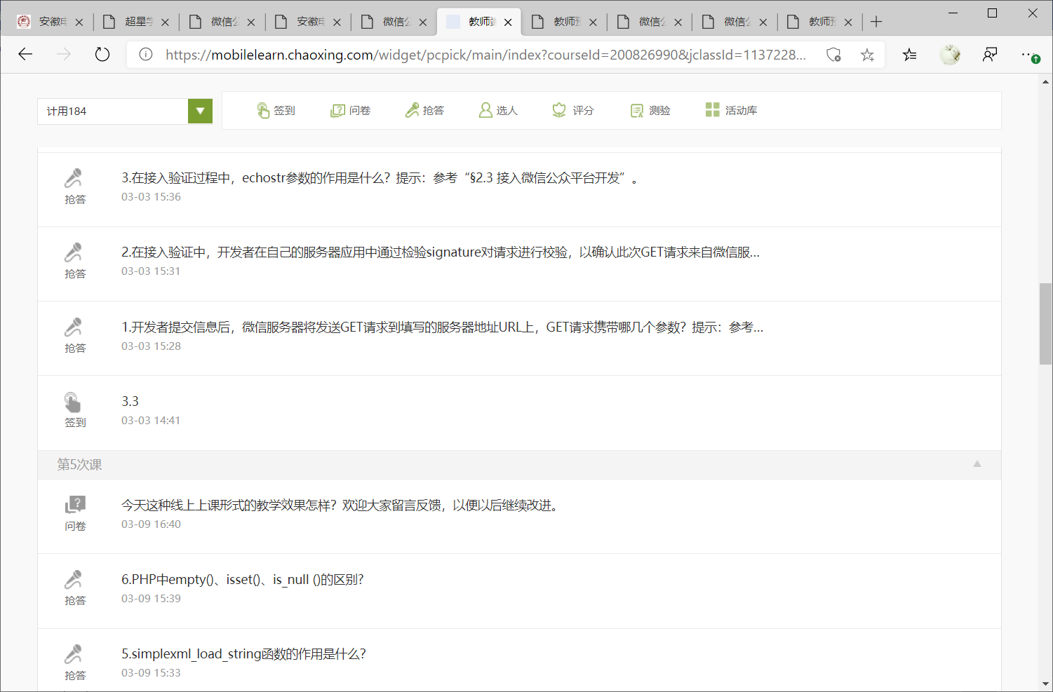 该部分超星学习通性能稳定、统计方便,所以在学习通上进行。