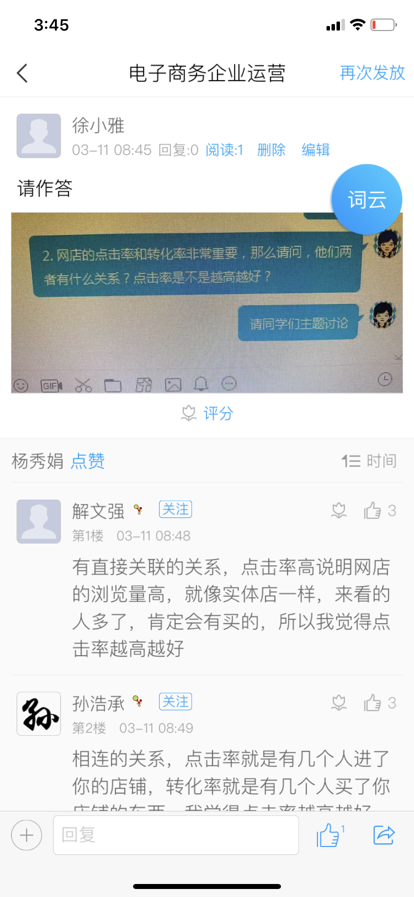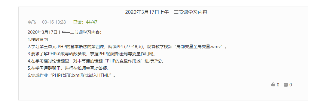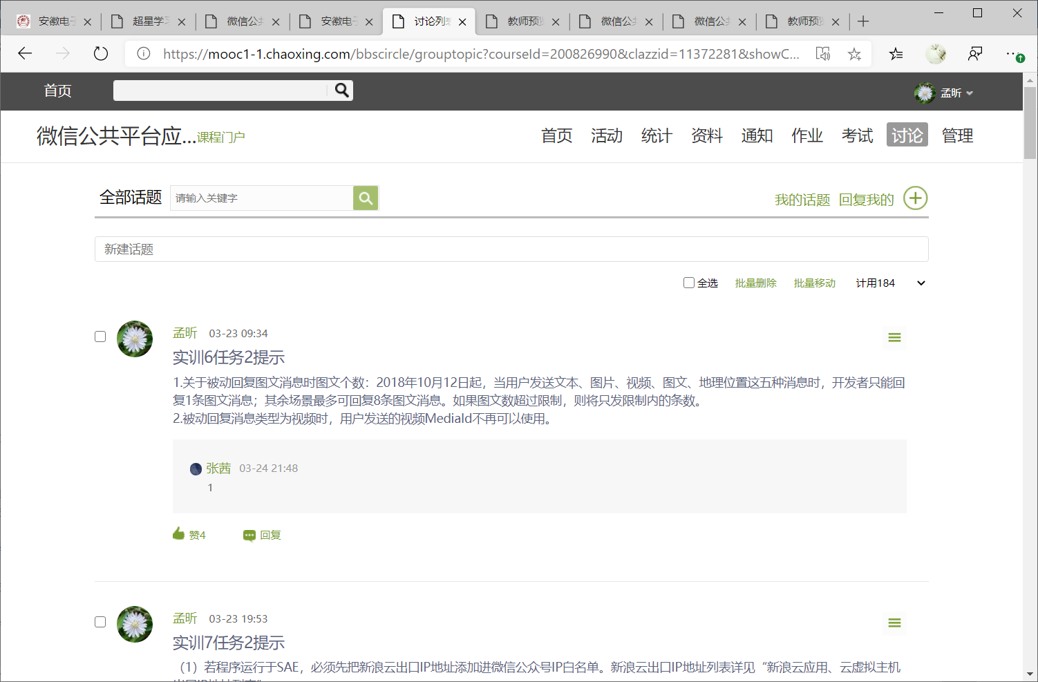 图 6课程门户(学习通)讨论区发布的学习提示话题