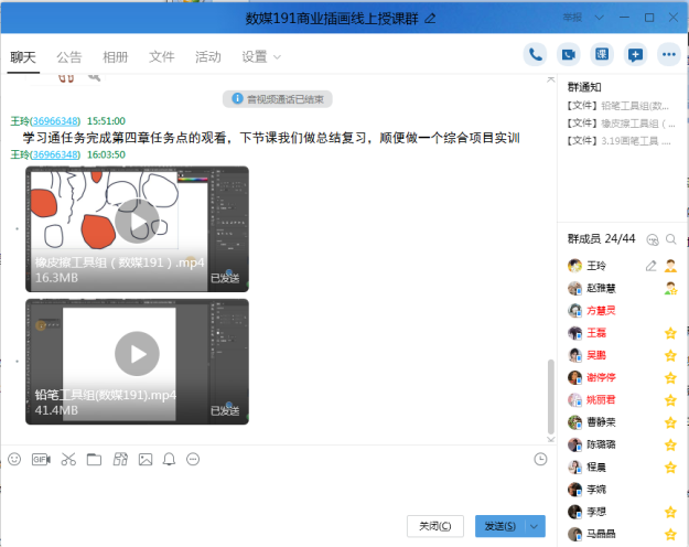 3.回放提醒:每节课我都会录制视频并且上传到QQ群共享和学习通里。课后提醒学生对知识点掌握不牢的时候随时回放观看。