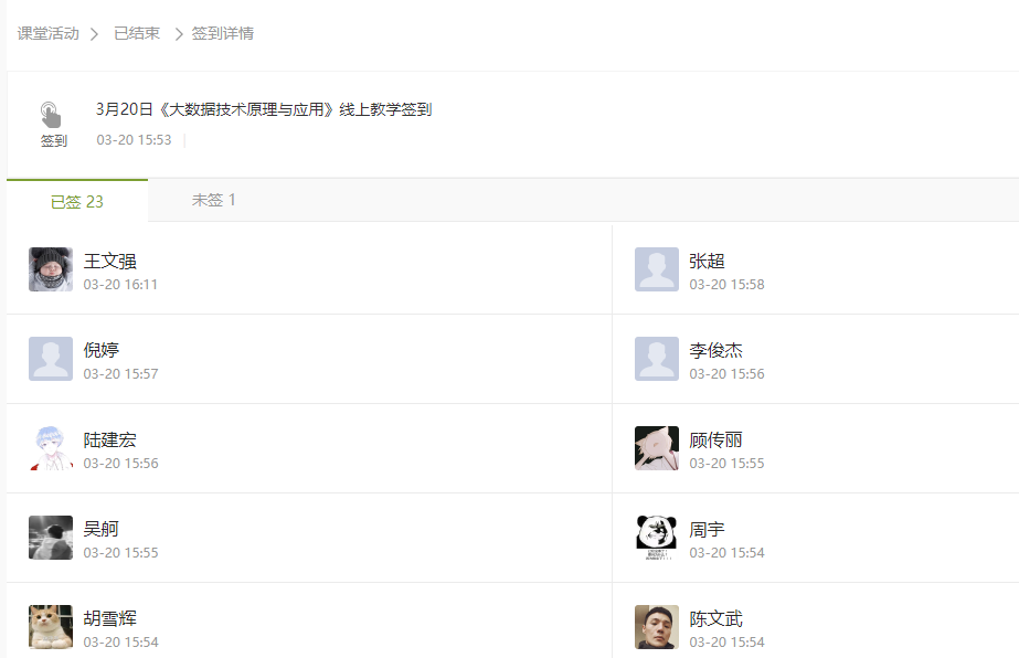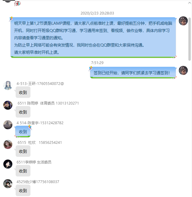 每一次课堂QQ在线人数与QQ语音通话人数,以及学习通签到人数,三者一致才能确认学生们都是参与上课,而不是挂线旷课。