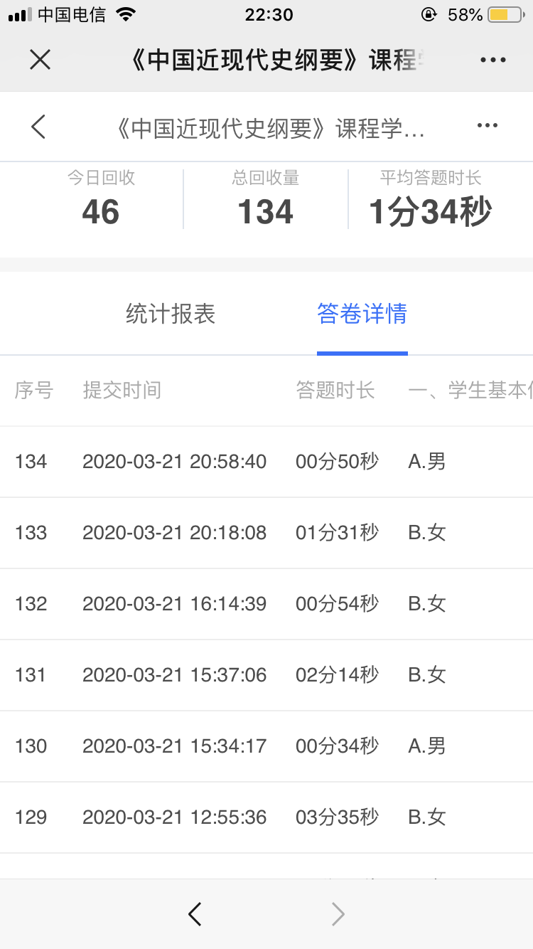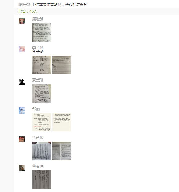 作业不仅可以让学生及时巩固知识点,更是教师了解教学效果较为直观的手段。通过学习通章节任务点和作业完成情况,及时提醒、督促学生课前预习、课后完成作业、复习。线上教学,如何把握住课堂尤为重要。为了防止学生挂课,在进行知识点讲授时,通过查看参与抢答人员信息,划出有可能溜号的学生,课中随时点名提问。若真的溜号,课下及时了解学生情况,督促学生按时、积极参加网络学习。随时与学生互动,不仅可以有效防止学生溜号、而且可以掌握学生对讲解知识点掌握的情况,及时调整教学方式、教学进度。