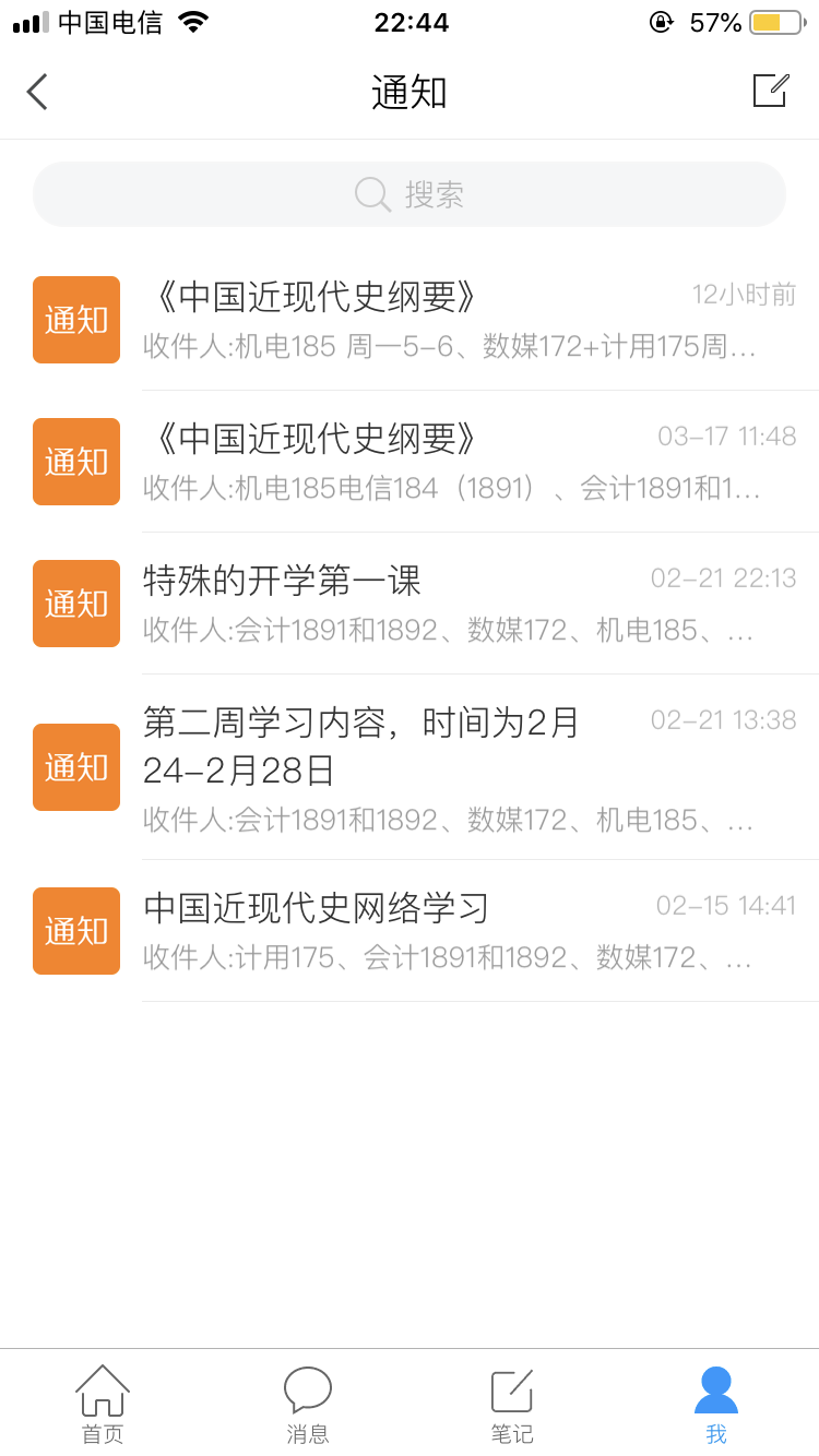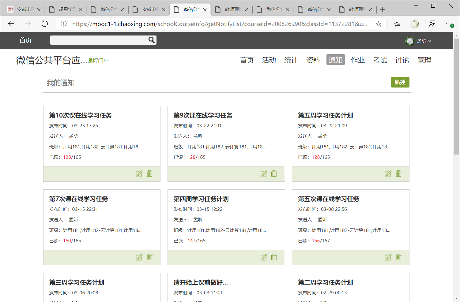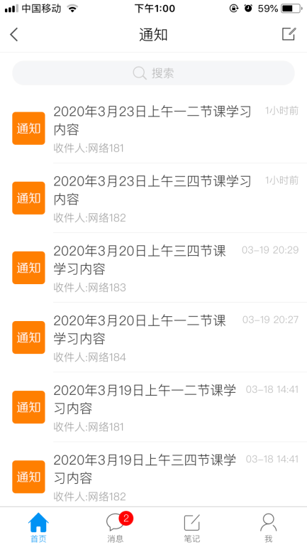 图 5课程门户(学习通)发布的每周学习计划、每次课学习任务通知