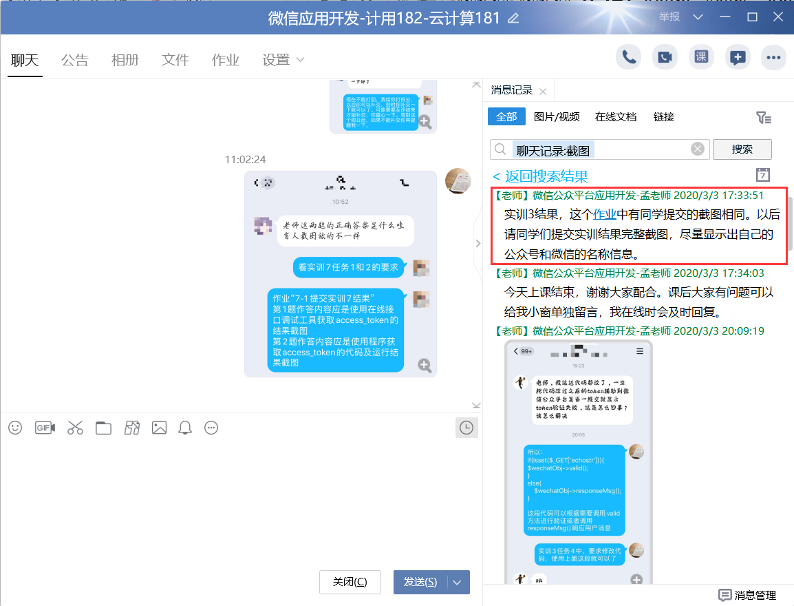 8.在课余解答通过QQ解答学生问题时,常见问题的解答聊天截图分享到群内,以提示其他学生