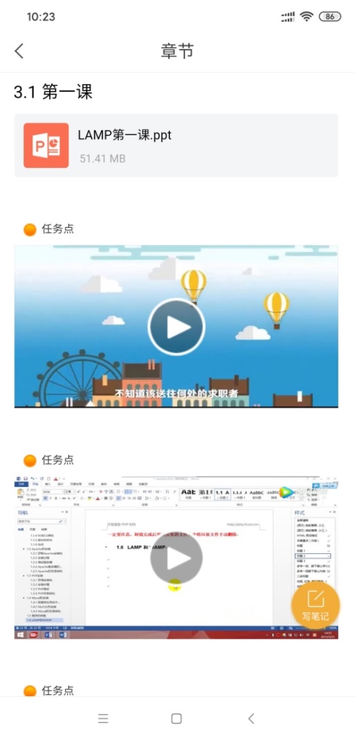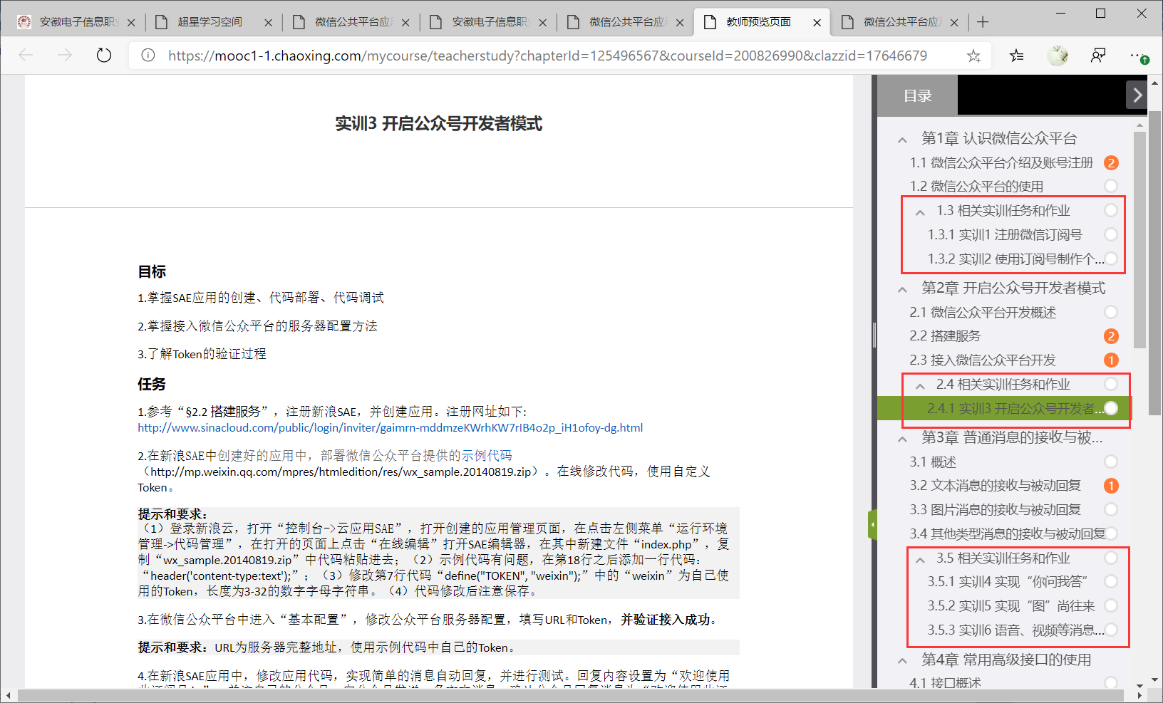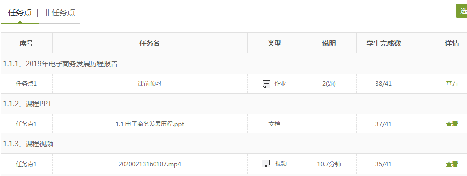 为了满足学生对于课程资源的需求,利用学习通平台,建设课程资源,包括章节内容、视频资料、电子课件,每节课的教学目标设计,并在章节目录中设置任务点,考核学生是否提前预习、复习。