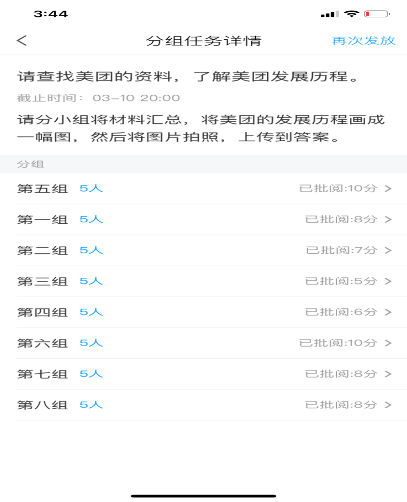 2.由课堂小助手依据提前布置的任务来根据上课进程发布各项任务