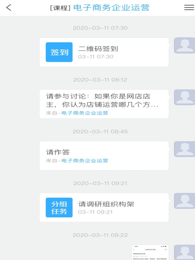 提前将每周学习任务计划、每次课学习任务、供学生提前准备的线上课堂抢答题目、作业、学习提示等通过学院网络综合服务平台课程门户(包括学习通)通知、讨论话题以及QQ课程学习群消息、公告等形式发布出去,确保学生能及时获知课程信息,提前安排学习。
