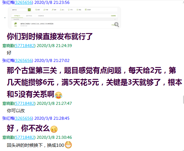 3.一个任务范畴内的学生在QQ群里通过打字(比如清晰要求的回复1)来回应准备情况。