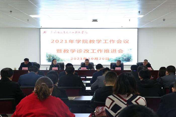 会上,党委副书记、院长王国武作题为《五育并举、诊改驱动,推进学院教学工作科学持续发展》的教学工作报告。教学工作报告中介绍了学院开发教学诊改平台、开展诊改工作业务学习、构建诊改长效机制等教学诊改工作推进情况,回顾了2020-2021学年的教学工作所取得的成绩,地方技能型高水平大学建设高质量推进,人才培养体系进一步完善,教科研工作成效明显,人才培养质量持续提高,五育并举,全员、全过程、全方位育人格局基本形成,同时也指出了当前教育教学工作中存在的问题和不足。