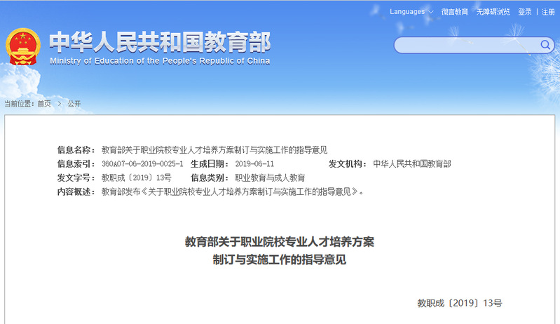 9、教育部关于职业院校专业人才培养方案制订与实施工作的指导意见