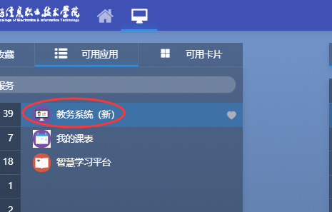 1.登录学院必赢766net手机版,进入网页右上方“智慧电院”,登录后点击“教务系统(新)”,进入教务系统。