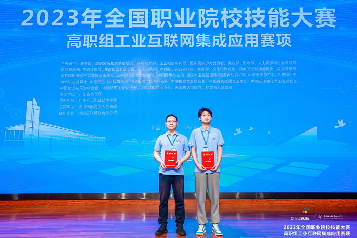 本网讯 5月28日至31日,2023年全国职业院校技能大赛高职组“工业互联网集成应用”赛项(师生同赛)在广东轻工职业技术学院举行,来自全国各职业院校的54支代表队同台竞技,切磋技艺。经过两天的激烈角逐,由信息工程学院教师王锦、云计算221班学生丁龙杰组成的师生参赛团队荣获二等奖。