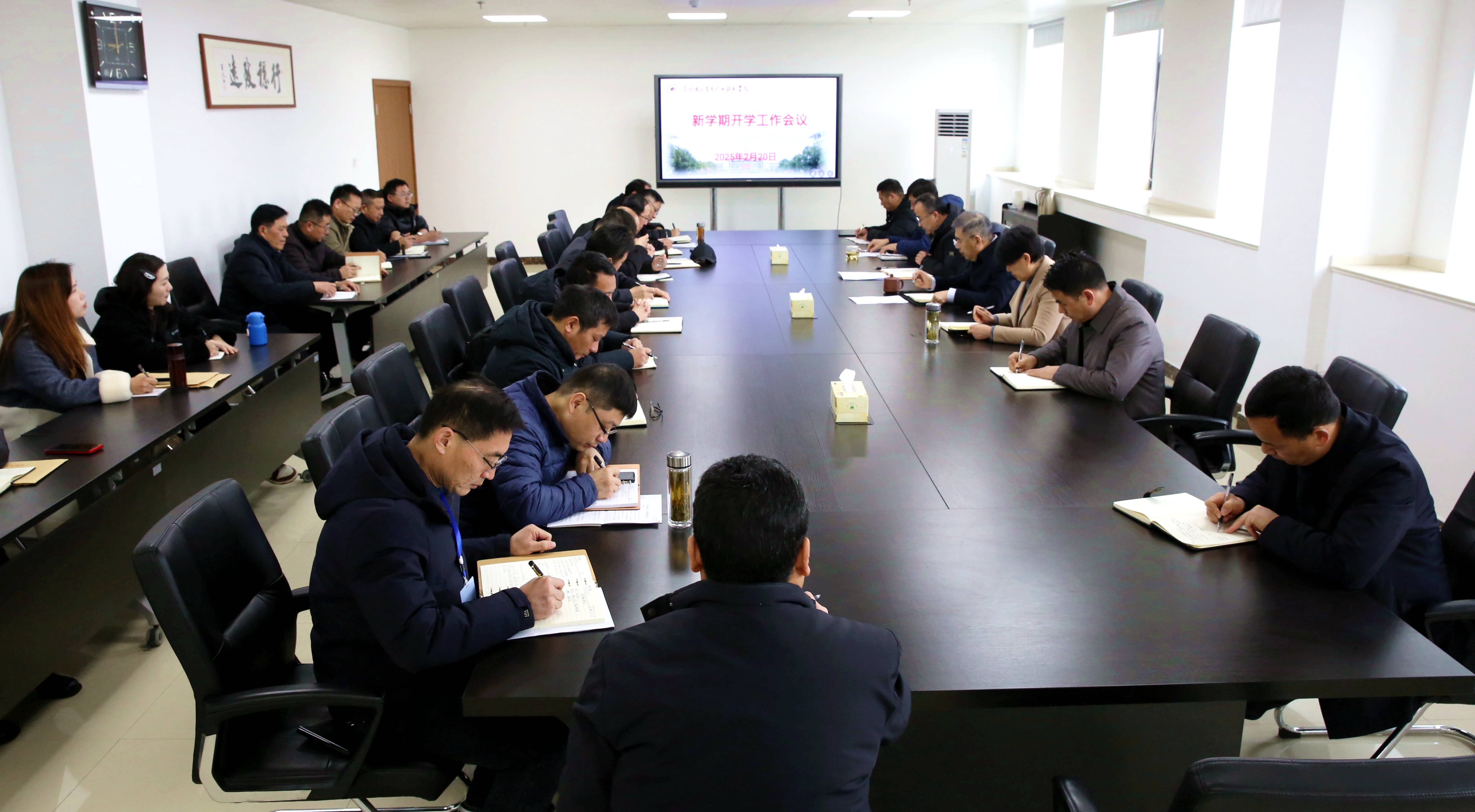 春光且作序,万物皆和鸣 。2月20日,学院在实验楼1116会议室召开2025年新学期开学工作会议。学院党政领导王国武、李素文、闻学、冯兴祥、蔡学良出席会议,各二级学院党政负责人与各职能部门负责人等参加会议,会议由院长李素文主持。